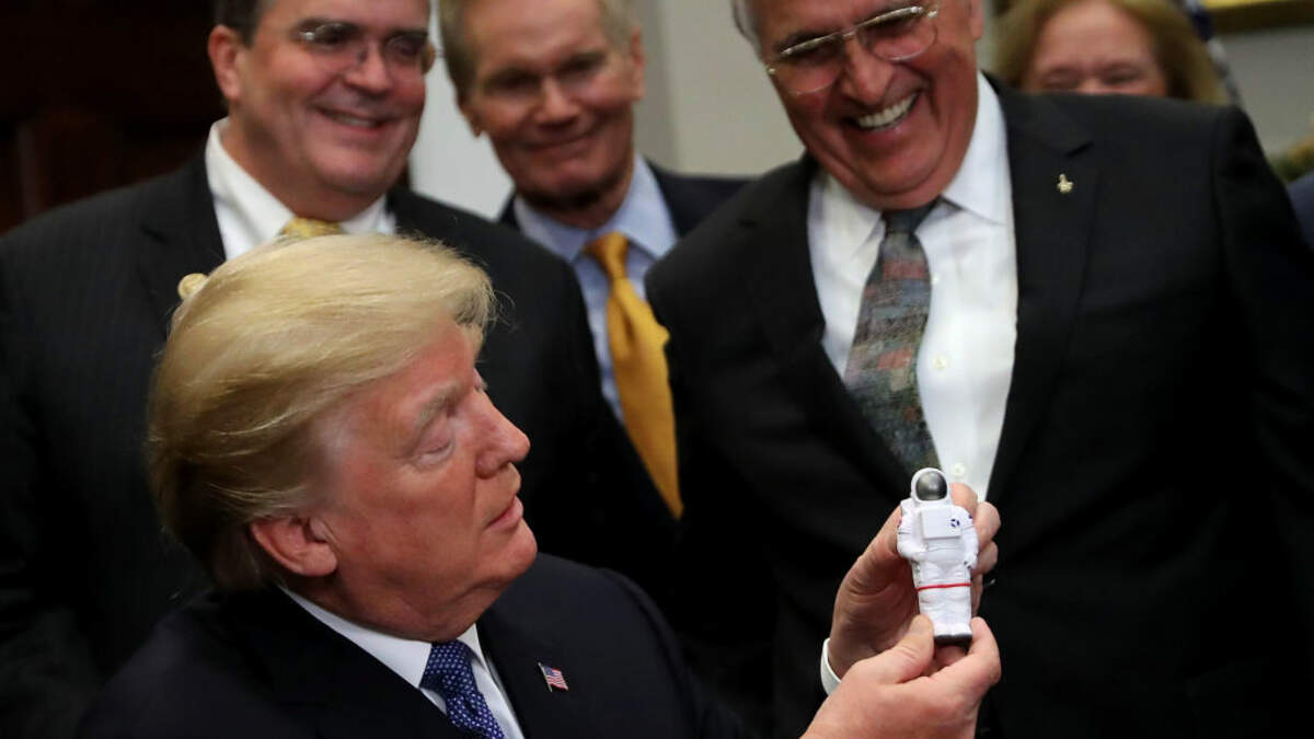 Donald Trump wants to see Americans back on the moon, the Hill reports. Today, at a White House ceremony marking the anniversary of the last human voyage to the moon, 1972's Apollo 17 mission, Trump gathered with Vice President Mike Pence and two former astronauts, Harrison Hagan "Jack" Schmitt and Buzz Aldrin, to sign a new order directing American efforts to get astronauts back to the moon, and eventually Mars.